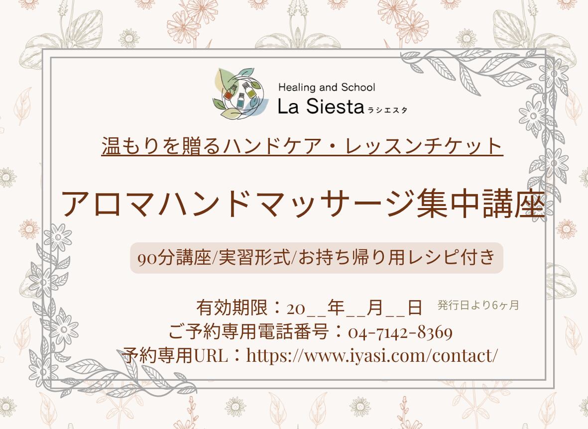 ◎ラシエスタにて90分の実習形式のハンドマッサージ講座をご受講いただけるチケット